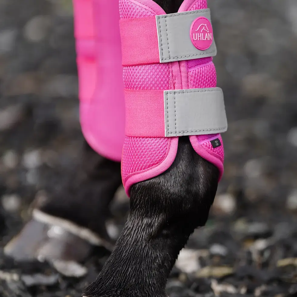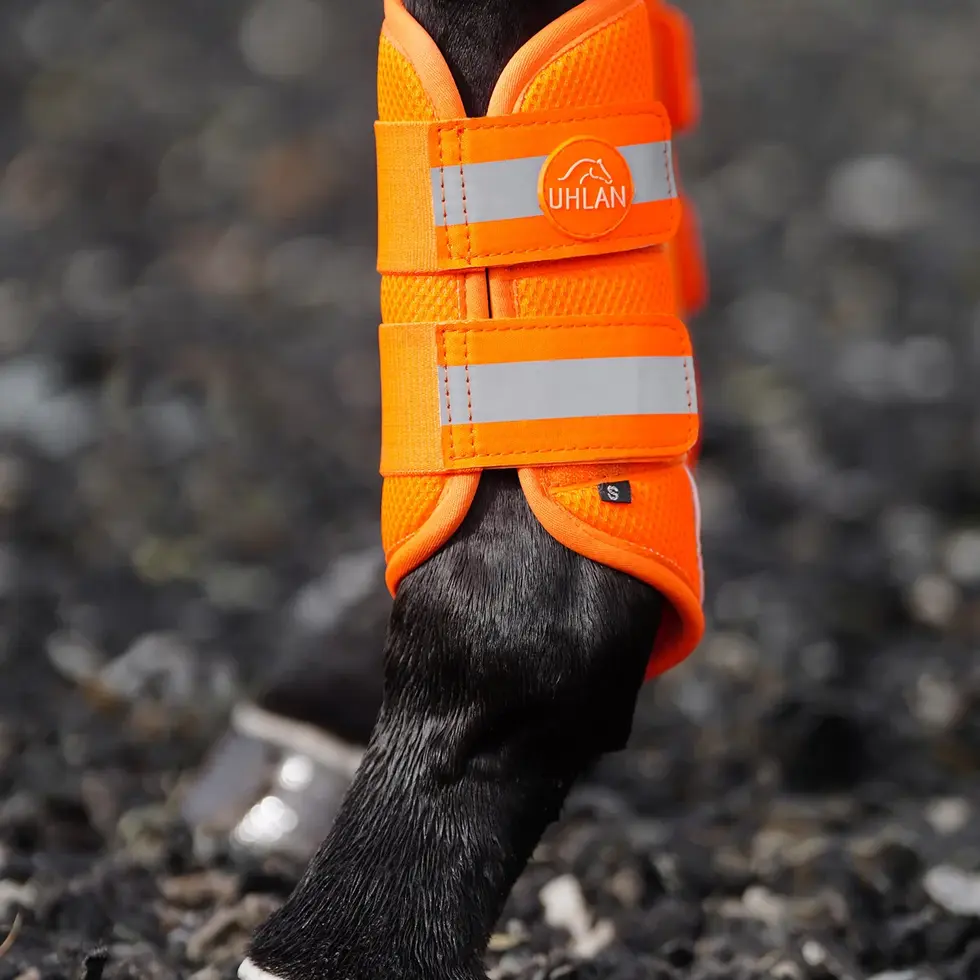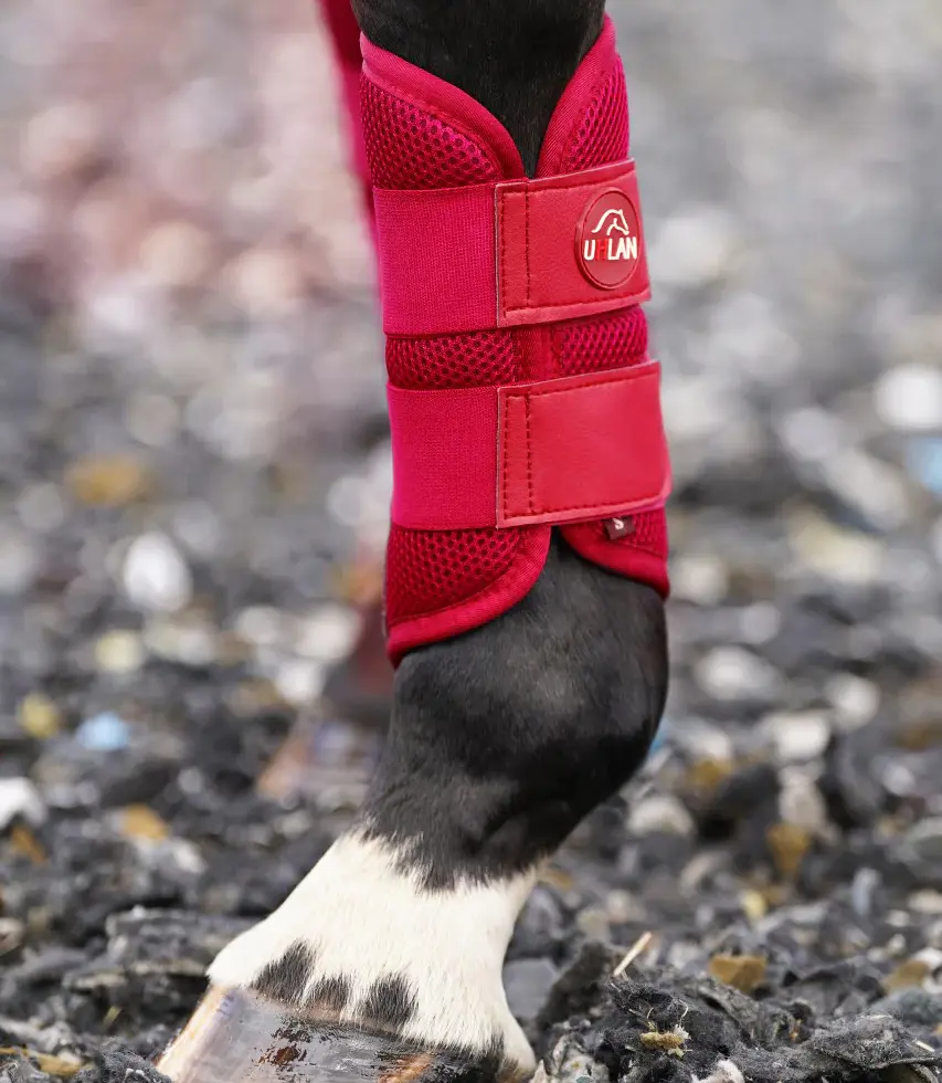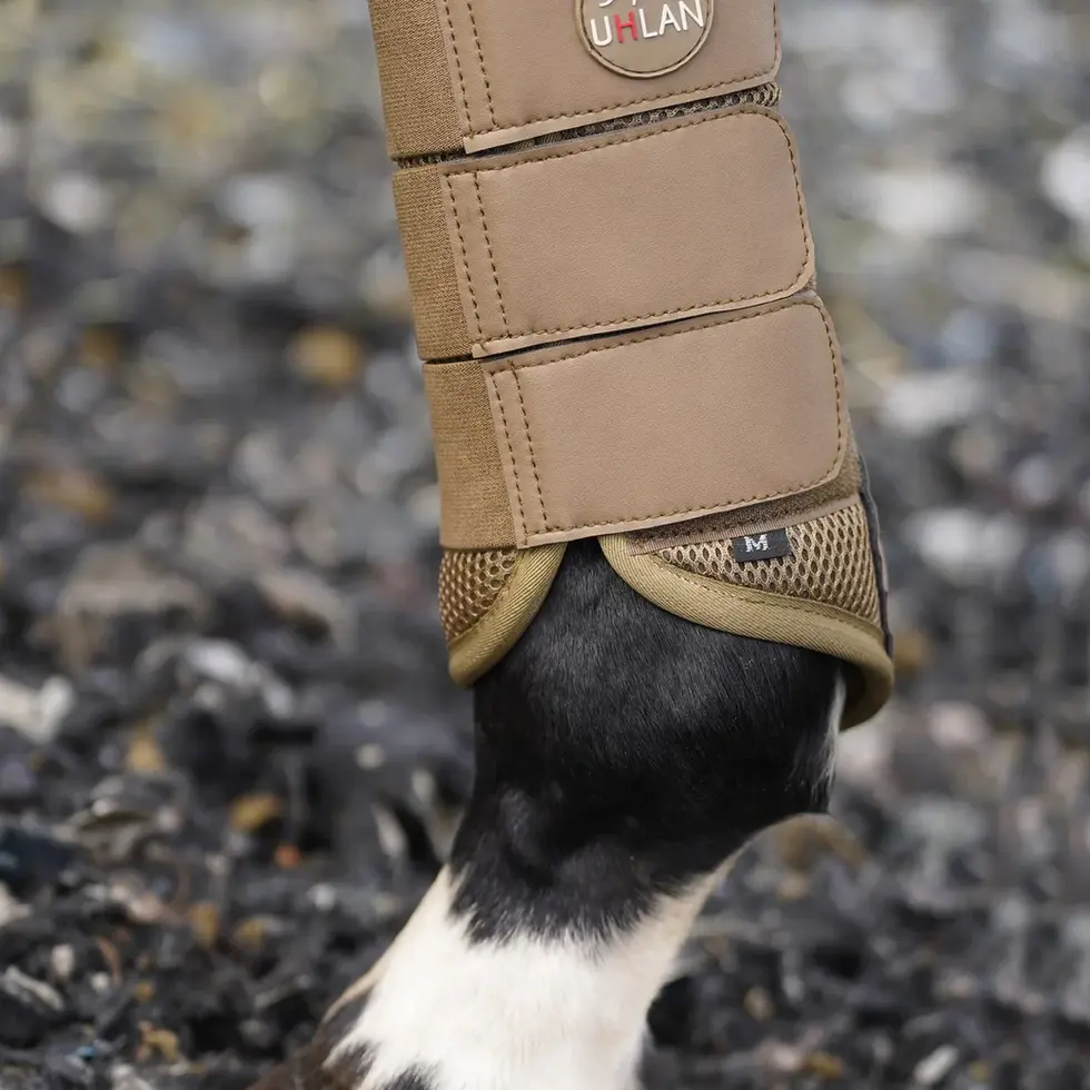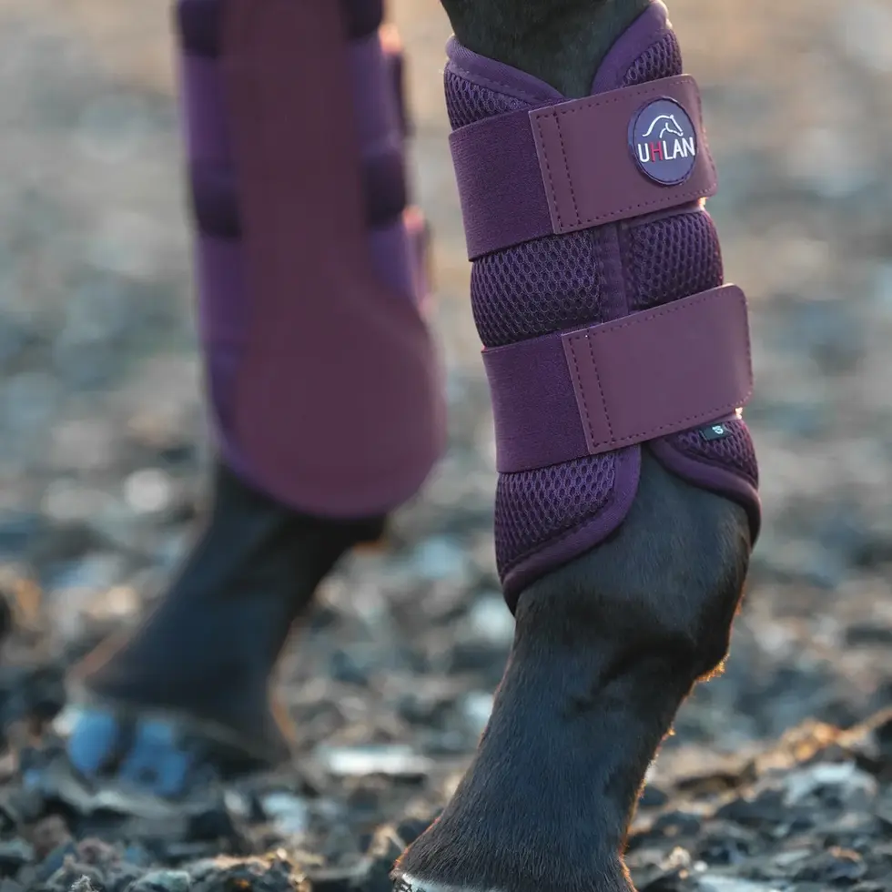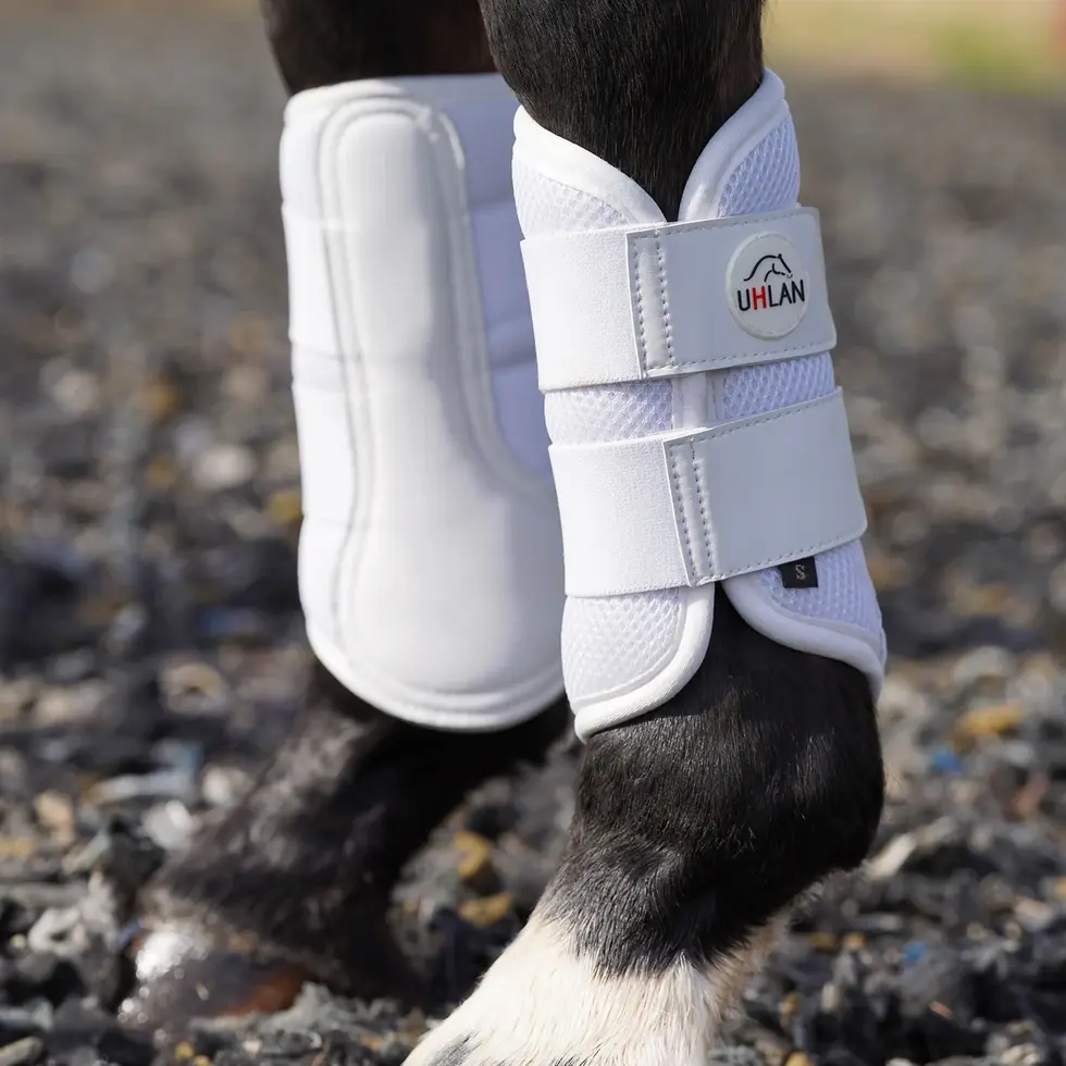 Uhlan luftstrøms benbeskyttere er laget med tanke på ytelse, og former seg pent etter hestens ben. De er designet for å beskytte mot støt og slag, samtidig som de opprettholder en jevn temperatur, slik at luft kan strømme mellom lagene for å forhindre overoppheting.